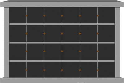 12 Niche Horizontal Columbarium 4-6×1-6×3-7 China Grey Walls/Jet Black Doors; 1 Sided, 4×3 Niches Includes Rosettes & Keys CFS-L-SY-406