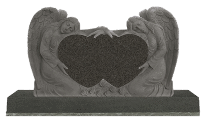 Double Angels Holding Hearts 4-2×0-8×2-6 AP Dark Cloud Grey Fully Carved Angels w/ Roses