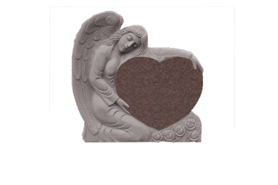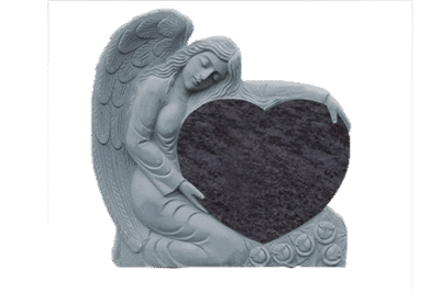 Small Angel Holding heart 2-2.5×0-6×2-8.5 P5 Blue Pearl Fully Carved Angel w/ Roses