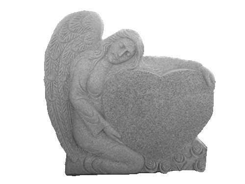 Small Angel Holding heart 2-2.5×0-6×2-8.5 P5 Blue Pearl Fully Carved Angel w/ Roses