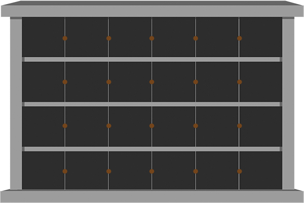 48 Niche 2 Side Columbarium 6-7×2-7×4-11 China Grey/Jet Black Horizontal-China Grey/Jet Black Doors; 2 Sided, 6×4 Niches CFS-L-029-1 ; Includes Rosettes, Key & 4 Extra Niche Doors