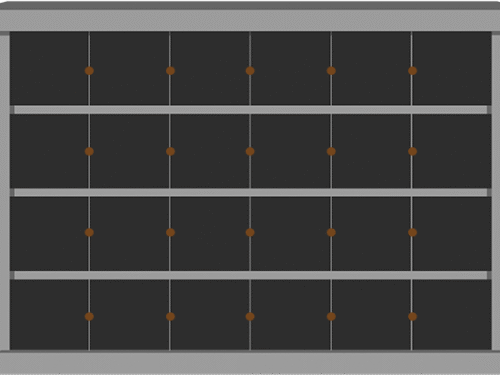80 Niche Horizontal 2-Sided Columbarium 8-7×2-7×6-0 China Grey Walls/Jet Black Doors Extra doors, CFS-E-LP-059